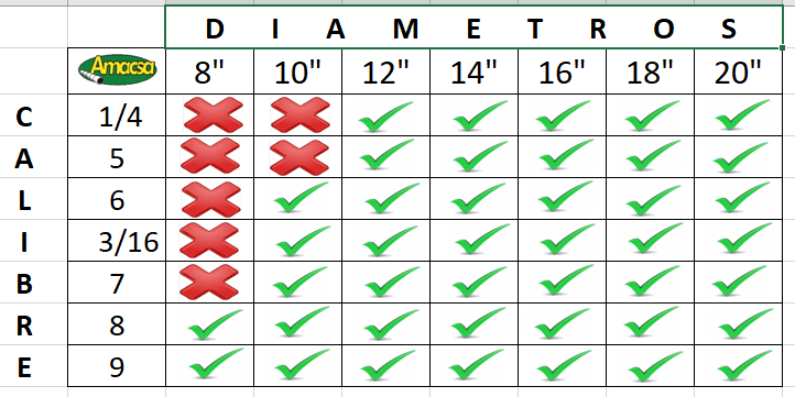 ADEME PARA POZO DE VARIOS CALIBRES Y VARIOS DIAMETROS.